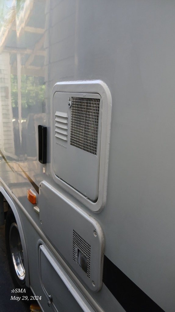 When we took ownership of the coach about 8 months ago I was suspect of this water heater shelf. The water heater was not secured to the shelf, so just the weight of the water heater kept the unit in place. We noticed a few weeks into our journey that the flush mount Suburban flange on the exterior wall of the coach was separating from the coach. Obviously something was up with the water heater mount.