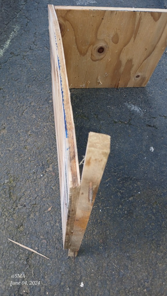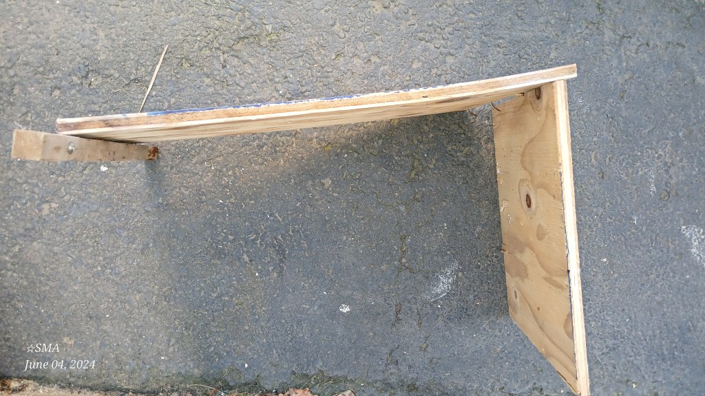 Our coach came stock with an instant water heater when manufactured. A previous owner didn’t like the performance of the water heater so they replaced that unit with a Suburban 6-gallon propane/electric water heater. That owner purchased the water heater and took the coach and water heater to a local Connecticut RV place to have it retrofitted into the coach. That RV place used either the stock mount or made a 3/8″ plywood to mount the water heater. This mount was secured to the coach exterior wall with two #10 wood screws and the rear of the mount (basically a shelf) was propped up with a 3/8″ plywood wall stapled to the shelf and screwed to the floor.
