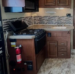 We have owned our new to us 2013 Jayco Greyhawk 31DS for a little over a year. When we first viewed the coach prior to our purchase we thought the decorating was very good, but shortly after owning the coach we thought the coach interior was dull and dark. Our first sprucing up was to install a brighter backsplash around the stove and sink area. We purchased some self-adhesive bright contact paper and applied to the walls. There is something about the wall surfaces of our coach, nothing sticks to the bare wall. So we reapplied the new backsplash only where the dull brick backsplash was originally applied. The second application has stayed stuck through all of 2024 and it does brighten the coach interior somewhat.