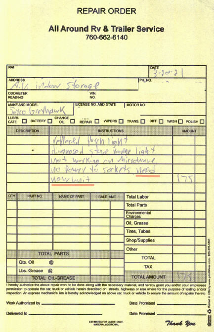 Our Dometic DOTR12CBIV microwave oven, which was actually manufactured by LG and most likely manufactured in the mid-2000 timeframe. When we purchased the RV two years ago we were informed the microwave stove light was not working. All the previous owners kept excellent records and receipts of all maintenance done on the coach, and this problem was no exception. Back in ’21 service was performed and the resultant diagnosis was a new Microwave was needed.