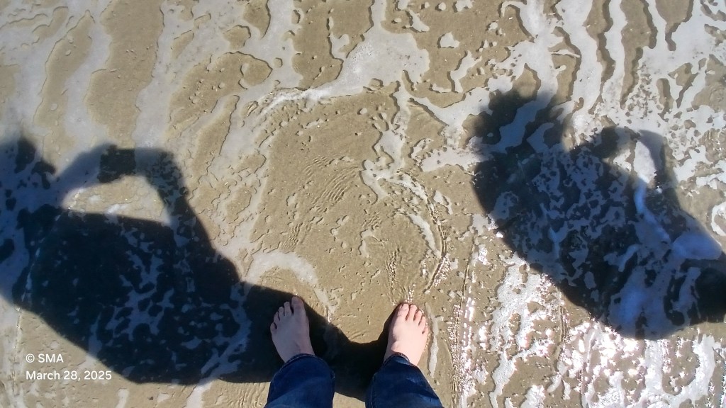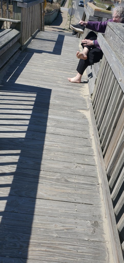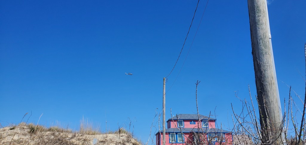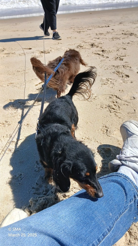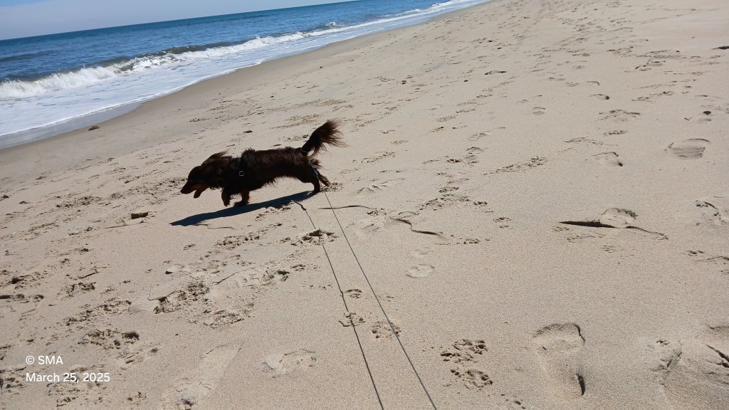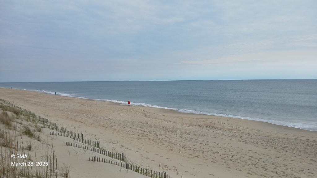 When we are on the road, sleeping late is not an option. Caramel was crying in my ear at 3:45AM wanting me to get up. 4AM Cats were fed and dogs were out (had to do this before Pitch and Daisy were out). Super quiet here and the views are just awesome. The trek to Kitty Hawk was an easy ride. The bridge / tunnel was pretty easy and traffic was manageable for a week day even thru Virginia Beach. Set up about 200 feet from the ocean, just over the dune. We took the dogs there and they loved it. The camp sites are real tight here. The plan was to use our eBikes but the only place to ride is in the road to get to the bike path which is about a mile away. So eBikes arestaying stowed away. Great weather, 50s in the AM with 60s by mid day. Beach is great and the dogs love running around.