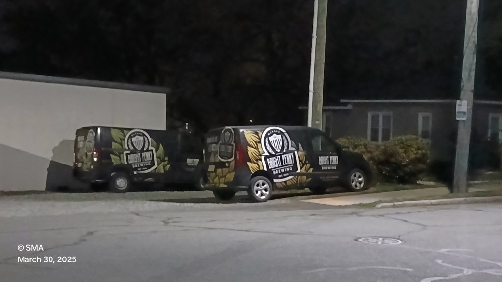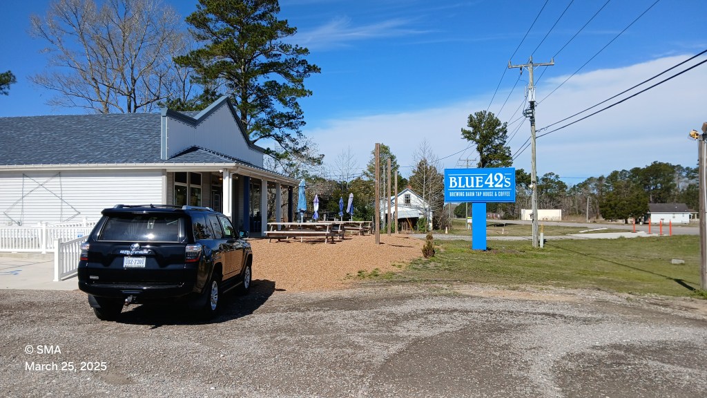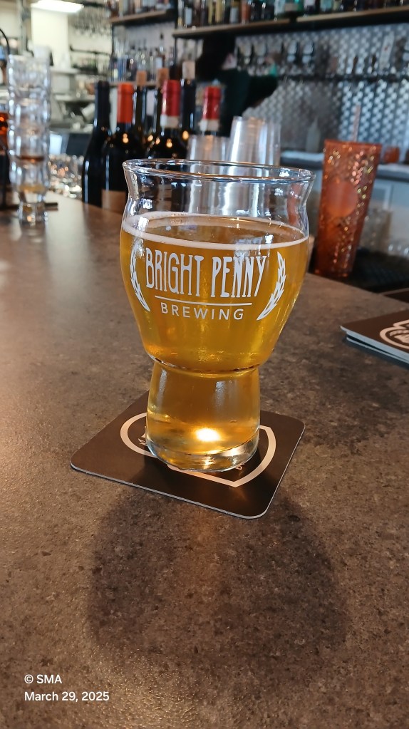 The road trip to Mabane, NC. was uneventful and really nice roads except for construction for a bit on I-40. We pulled into Bright Penny Brewery at 11:45AM and had ourselves a couple beers and a small “Salt & Sweet” Pizza. Heading back for dinner later since there is a live band.