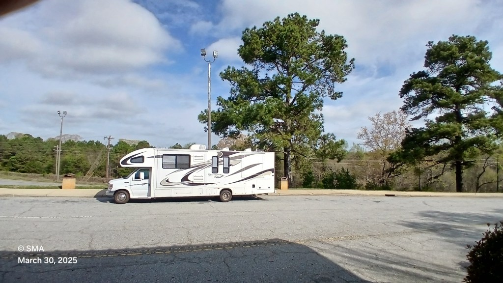 Getting ready to hit the road for Toccoa, GA. this morning. Nice weather yesterday and this morning. Thelma is feeling much better today. Will post later today more stories from today and photos. Thelma’s stool sample results came in early this morning, no parasites. This is great news. Traveling to so many different places/environments run the risks of picking up a nasty bug but Thelma’s issue was perhaps just stress related. Meds are all doing the right thing.
