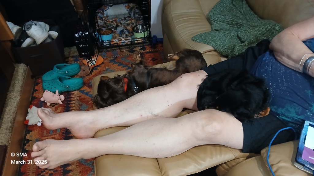 We got back to the campsite about 1:30PM and the dogs were shot. Thelma & Louise zonked out on the couch (along with me). We chilled for the day mostly in the coach. Our neighbors (from Ohio) had their son’s family over for the day (they live in the area). They stayed quite a while and not to infringe on their family time we hung out inside. One thing you learn about camping, everything is a shared space.