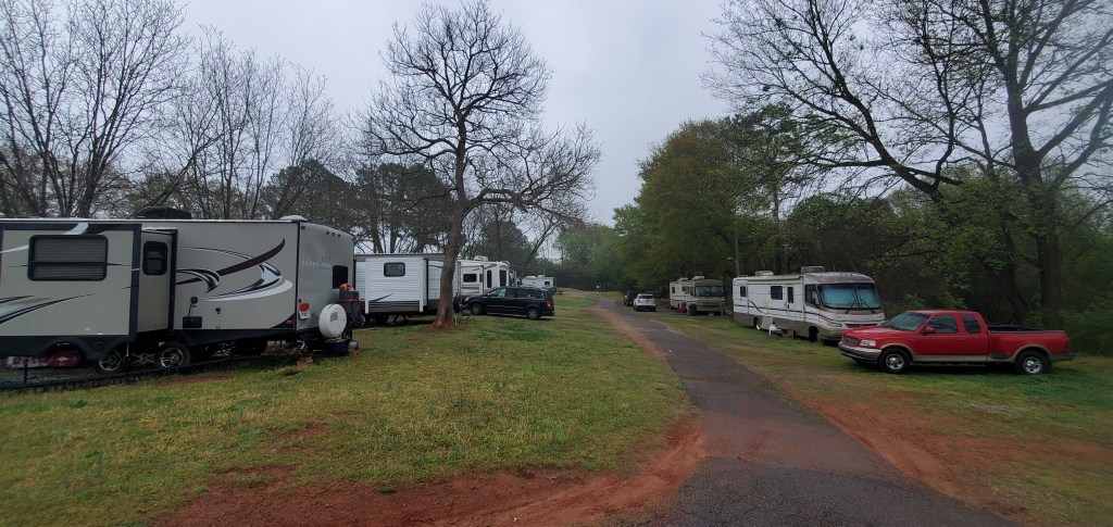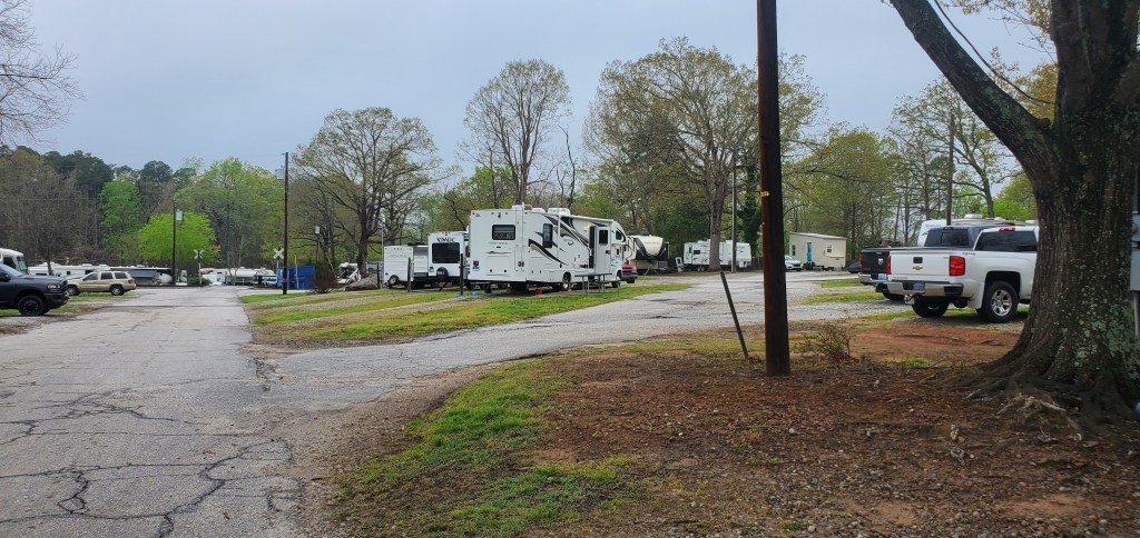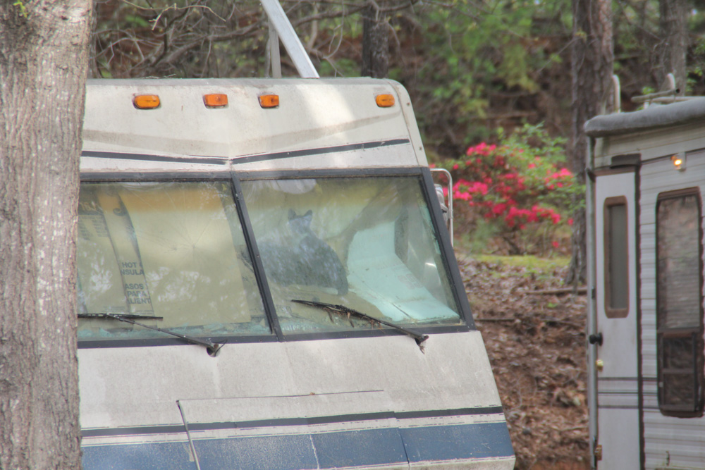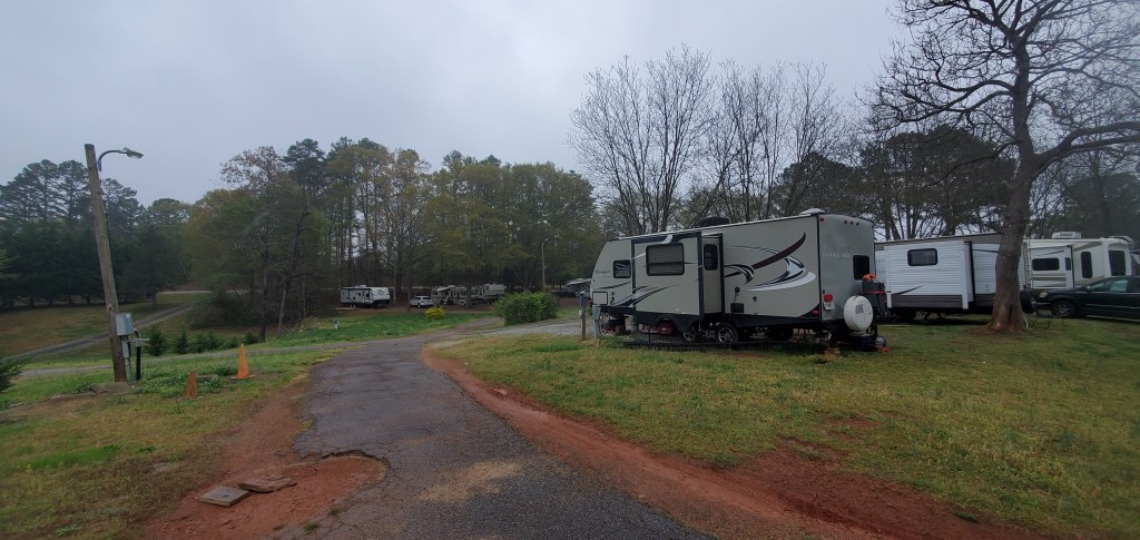 Two days into our stay at the Toccoa RV Park. This park is a little run down and rustic with most of the sites taken up by full time residents (I wouldn’t classify them as full time RV’ers). Traveling the US in an RV has enriched our understanding how people live life and survive. Our stay in Greenville was similar to this RV park with most of their sites taken up by residents or at least transient that needed a place to park and rejuvenate. Back in the 90’s we had a seasonal campsite in the Catskill Mountains and that campsite reminds us of where we are today. People are very friendly and there is a slew of cats running around; some friendly and some obviously feral. Doesn’t look like this RV park enforces the 10 yr rule on age of RVs. That is something that really was a concern when we purchased Coachella Birdy since she is now 13 years old but still looks new.