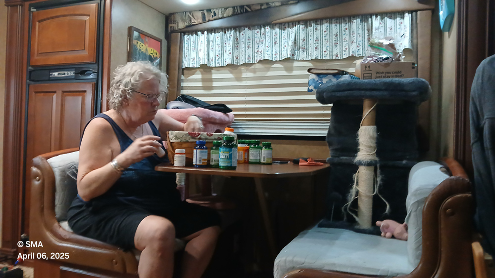 On the road by 8:15AM, Thelma was ill starting yesterday. This was an easy choice since Hilcrest Animal Hospital was located close by. Bloodwork showed no issues, we will know about the stool sample tomorrow. The vet gave us a couple drugs for Thelma that we will give her for the next week. What a great vet for getting us in on a moments notice and gave us a $50 discount.