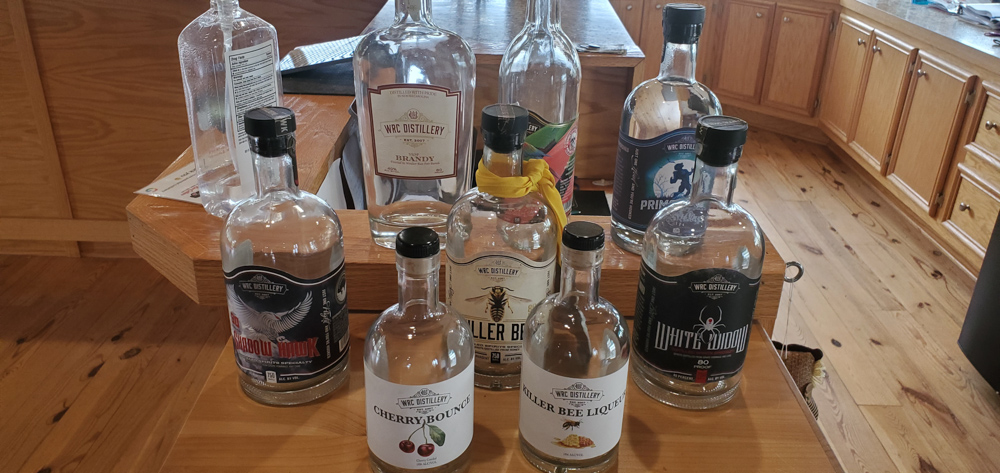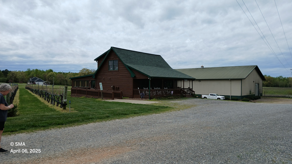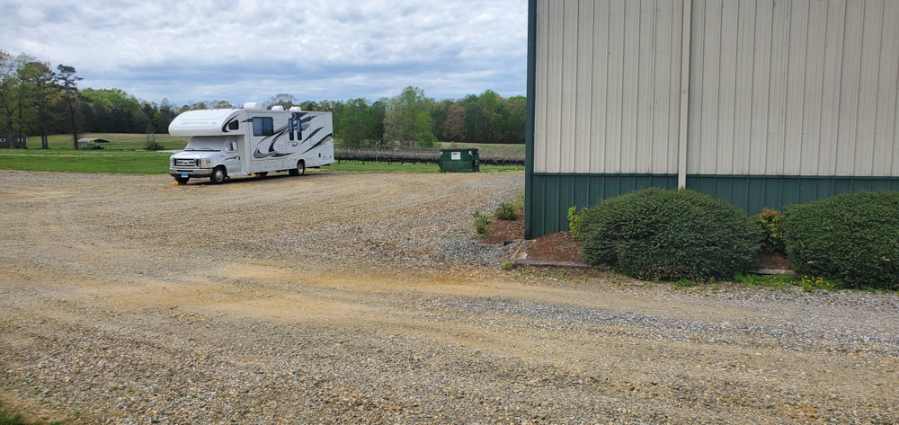Got on the road very early today, actually all stuff stowed and on the road by 6:15AM. On the way out of Toccoa we stopped at the local Walmart and picked up a few essentials and then on the way to NC.. Rain started when we leaving Toccoa but soon after the sun started to break through the clouds but never accomplished what it was intending. Overcast most of the day but nice and warm. Made it to the Windsor Run Cellars by about noon. What a fantastic stop over. Super quiet and in Amish Country. We made new friends with the workers here (Lisa, Renee, and Jeff). Not very busy but it is off season still. Got a tour of the distillery and tasted some very nice spirits and wines. Harvest Hosts encourages members to spend at least $30 to $40 which we easily accomplished today.