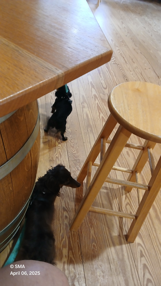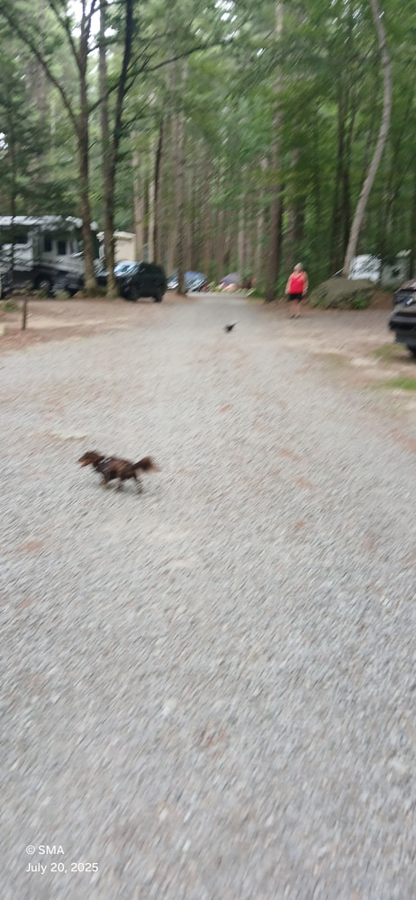 Our last day in the park. Just relaxing today. Yesterday we did take Thelma & Louise for a mile walk through the trails, they loved exploring. This morning at 5 AM some critter had its eyes on us. I could see them glistening about 30 feet from us, probably a fox or racoon. Super quiet here.