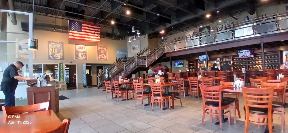 A bit chilly, only 43 outdoors, this morning so the furnace was turned on to get the chill out of the coach. We are next to an Aldi so we will walk there and pick up a dozen eggs before hitting the road in a couple hours. Next stop New Jersey. Another rainy day driving, but fortunate it was only for about 150 miles. Arrived at Redington Brewery / Hop Farm just before 1 PM, set up and grabbed a flight. Good beers and a Mex food truck arrived about 1:30 PM. We headed back to the coach to keep the pups company and cook up a pizza and some stuffed mushrooms. Heading back down to the brewery after a Saturday family call.