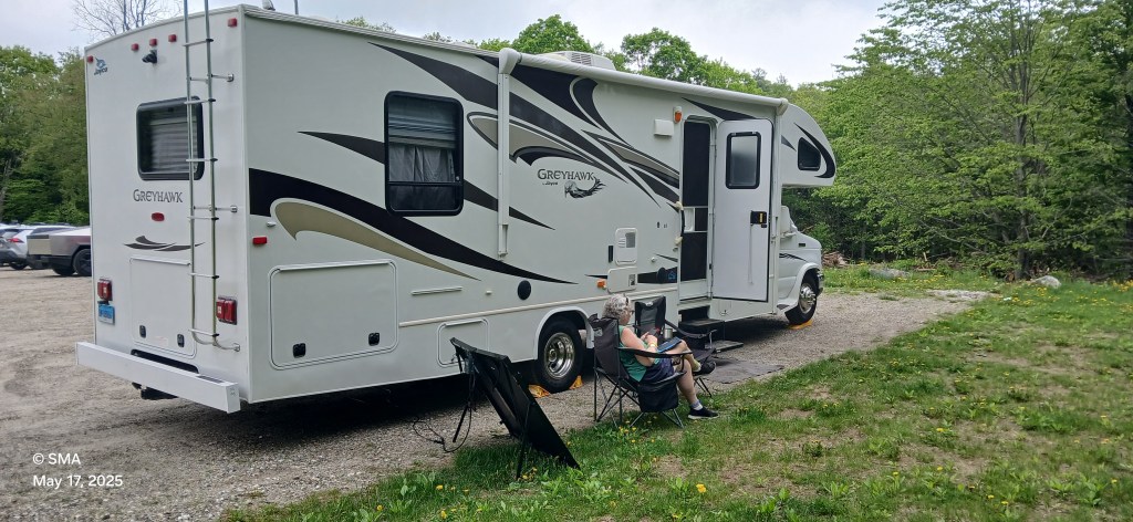 Had to take a couple day off from the blog, we consumed all of our allotted 50G of cell phone data plan. Today we hit the road very early, 7:30AM! Long drive to Littleton, MA from Bar Harbor. Lots of traffic, mostly on the boarder between Maine and NH. Many, I mean many, total idiot drivers mostly driving their entitled Tesla’s feeling they own the road or young foolish drivers that don’t understand what directional signals are for or merging. Nearly took out a Tesla who thought its’ ok to pass me in the breakdown lane. Glad to be off the road after a six hour trek. We did pull over at a service area to eat a quick salad in the coach, take the pups out, and just de-stress for a little bit.