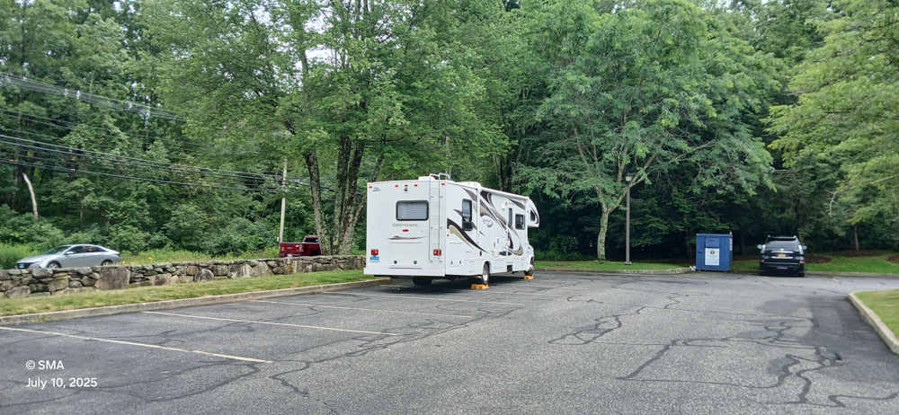 Bright and early start and on the road by 6:45 AM. Traffic was very light today and made it home before 9 AM including the tank dump at the Wallingford rest area on I-91 South. Unpacked and all situated by 11AM which gave me time to debug the levelers that gave us issued on Friday. After spending 20 minutes futzing around I concluded there is really nothing wrong with the levelers and everything is working normally. We did have a solar flare last Wednesday and the resulting CME hit the earth Friday so perhaps that was the issue? It’s a stretch, but that’s my explaination for now.