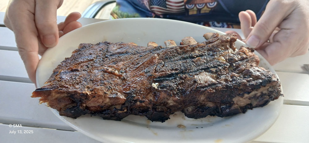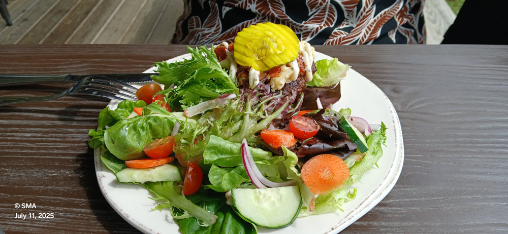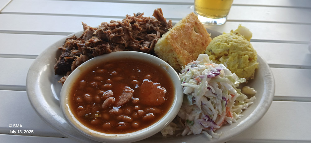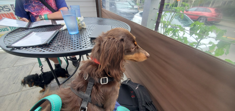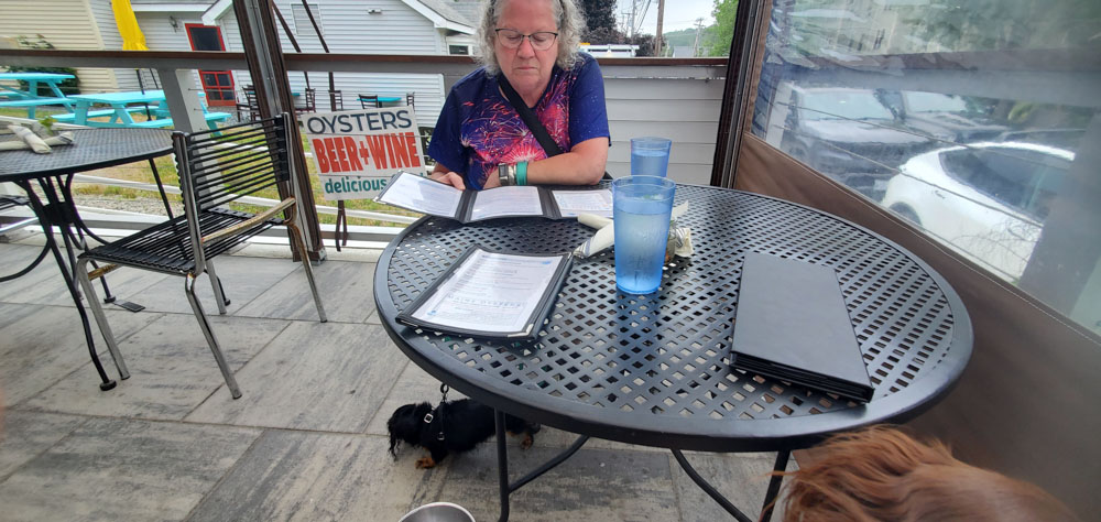 We took the bikes with dogs in tow to Mainely Meat for lunch. What a terrific eatery and dog friendly. We parked the bikes in a car spot and set the alarms and we had a nice lunch. MM was a breakfast, lunch & dinner establishment prior to the pandemic but like so many other businesses the COVID plague really took it’s toll on MM too. Now MM is just lunch and dinner. No longer do they smoke brisket daily and not even sure they smoke their own meat any longer, but the food is really tasty.