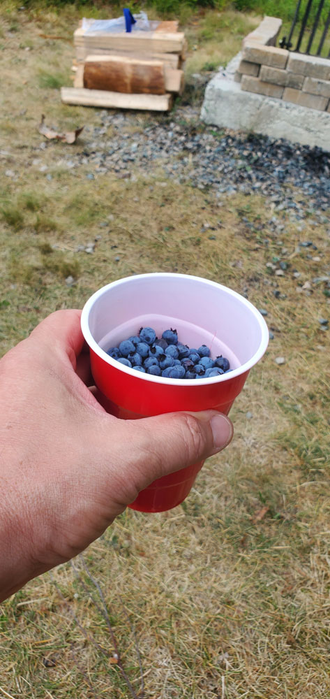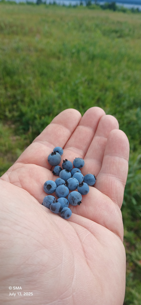 We headed back to the campground to relax for the day. The blueberry fields were inviting so I decided to head out and pick another pint of the morsels. Between my picking in the morning and the afternoon harvest, I picked and froze 2 pints of blueberries to enjoy at a later date. By 8PM the dogs were zonked out from all the walking so everyone was in bed by 9PM.