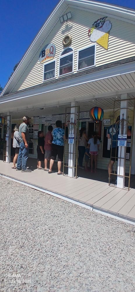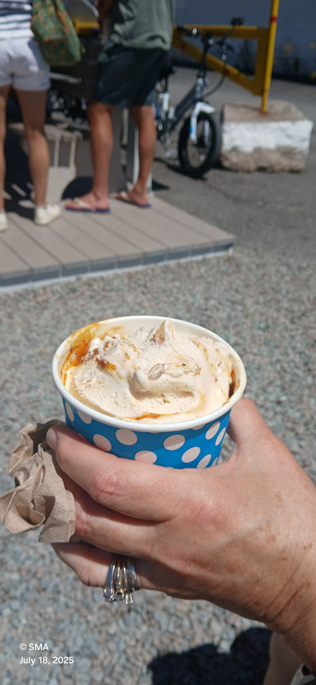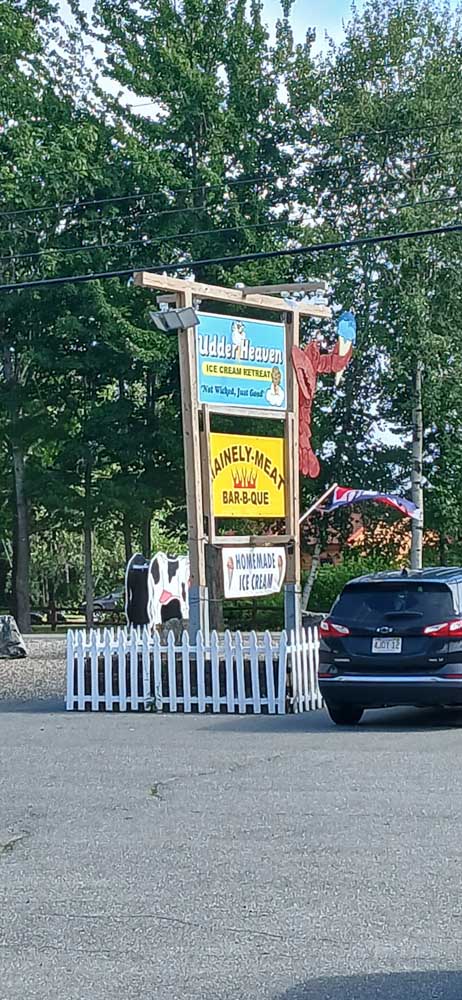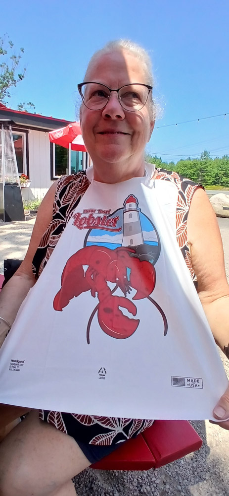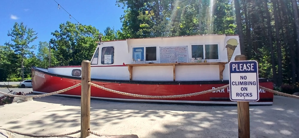 We ate an early lunch at Mainely Meat, one of favorite breakfast stops years ago. They have changed a bit over the past 5 years. No long breakfast, just lunch and dinner and they no serve brisket which is a bit let down. Lucky for us the eatery is just a few hundred feet from our campsite. An ice cream shop is next door but they continue not to serve sugar-free ice cream, so we skipped ice cream and will get that in Bar Harbor.