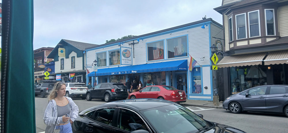 Nice cooler and overcast day, the perfect day to head to Bar Harbor. So with dogs leading the way we walked to the bus stop at the campground entrance and took the Down East bus to Bar Harbor. It really is a testament to the successful tourism business of Bar Harbor and the entire area. With more than a half-dozen bus routes, from anywhere on Desert Island a person can go anywhere in the area all for no charge! LL Bean donates a ton of money to the bussing company and these guys do a great job, and will even pick up folks anywhere along the route by just waving your hands in the air.