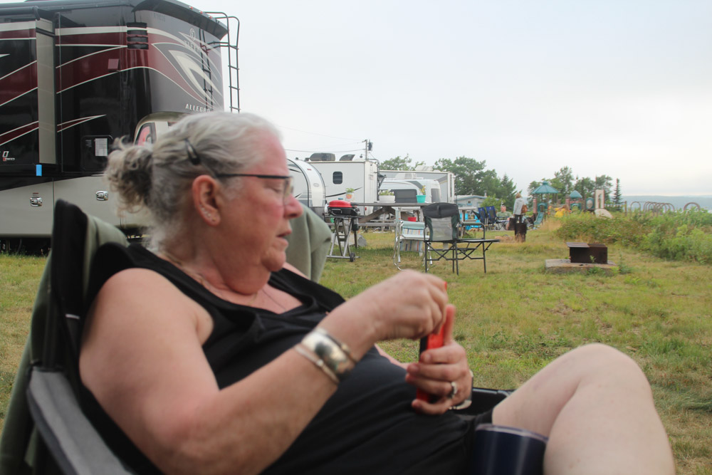 Very tired last night, I broke my 3 to 5 hours drive time yesterday and by 8PM I was exhausted. I am relieved I have a few days rest before the last 120 mile stretch to get home. The weather cooled quite a bit overnight. This morning temperatures were in the lower 60’s. This campground is very quiet and well run. If there were negatives to be said, mosquitos are plentiful. We could not sit outside last night which was ok since it was raining off and on. This morning I grabbed the Termacell and fired it up, and so here I sit blogging next to the mosquito force field. The device works quite well, no bugs around me.