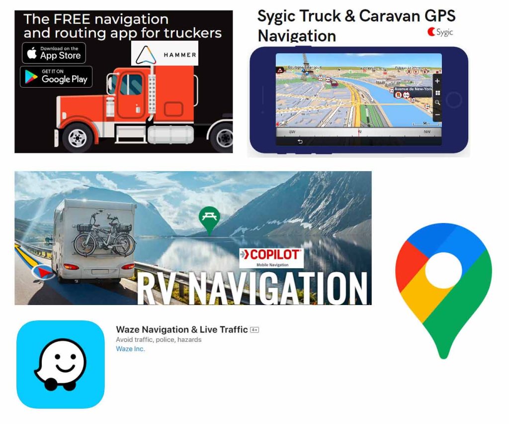 Hammer bubbled to the top during my evaluation. I have had no errors and is more in line with use for trucking rather than an RV but it does work well. Because it’s geared more for trucking, campgrounds and other sites that would be of interest while driving an RV do not appear on the map route. The big positive for this app is that it is free! I decided I would stick with Hammer and Google Maps running on two phones while in our RV. Google Maps could be used to find campsites and other RV interest sites and Hammer would be our route guidance.